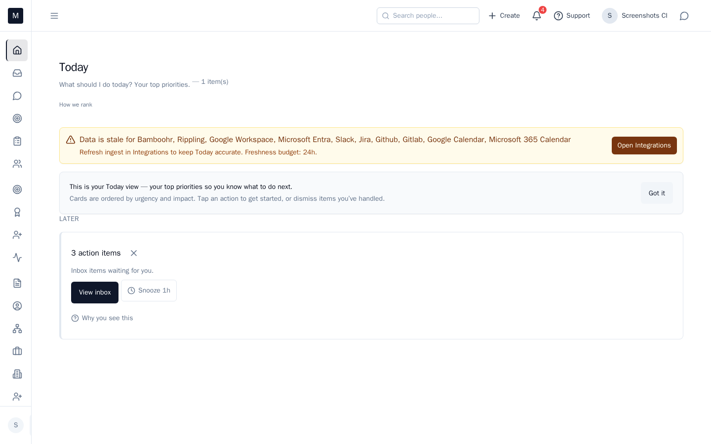Managers are pulled in every direction. Without a single place that answers “what should I do next?”, you either miss what matters or waste time checking five different tools.