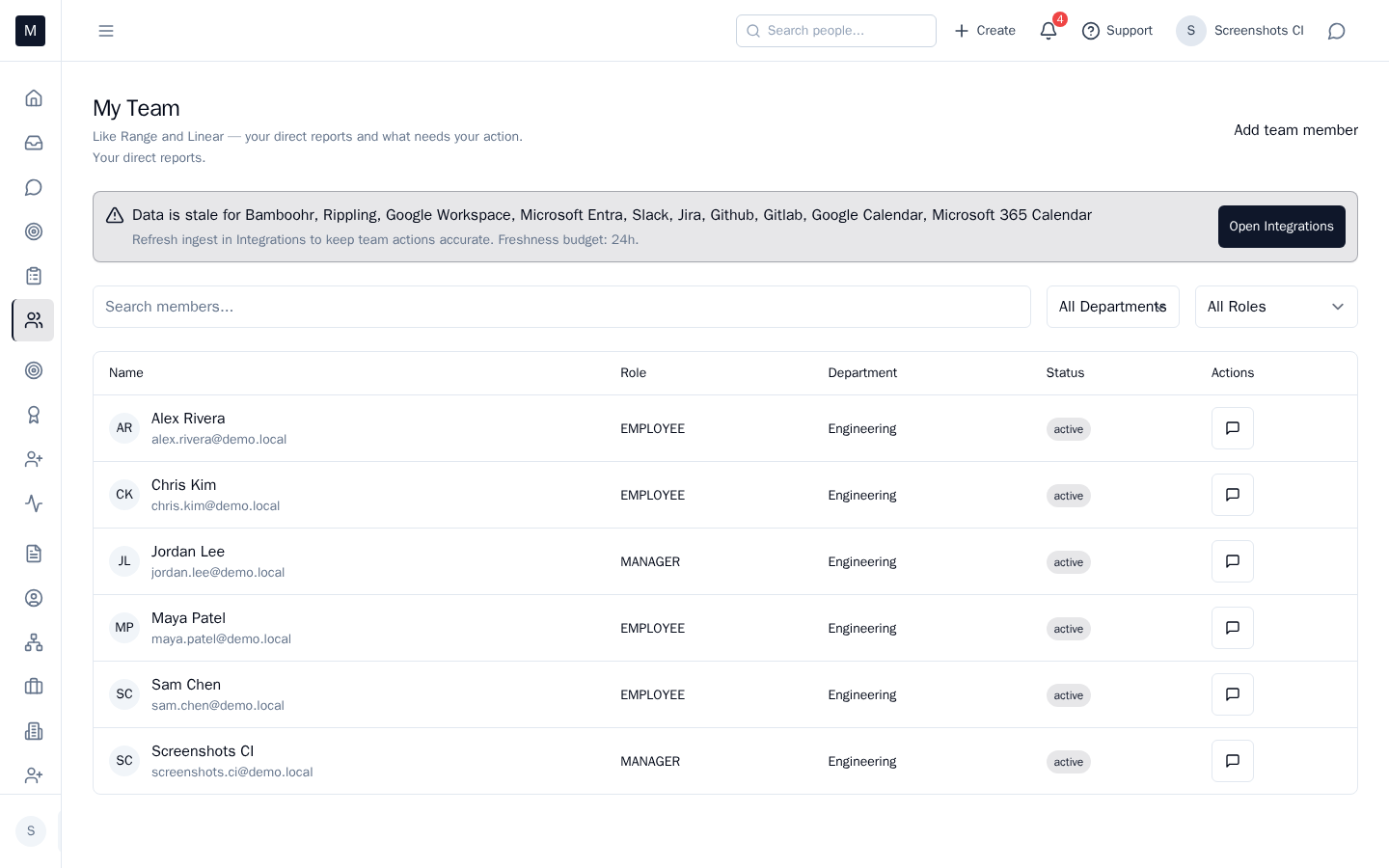 Open the card to see team or individual capacity. Adjust assignments, approve leave, or schedule a conversation. One place to keep workload visible and balanced.